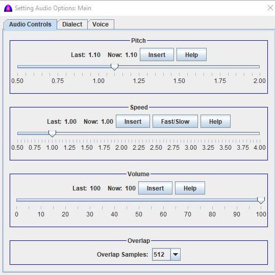 This is the help file to set speed on the Speed, Pitch & Volume tab on the Setting Audio Options window under menu bar.