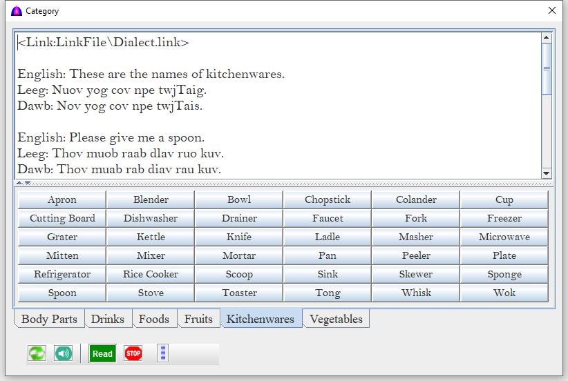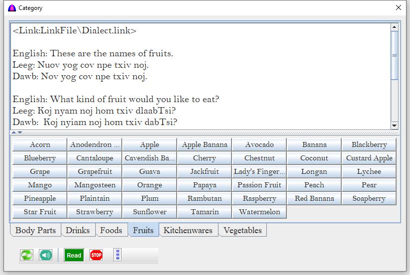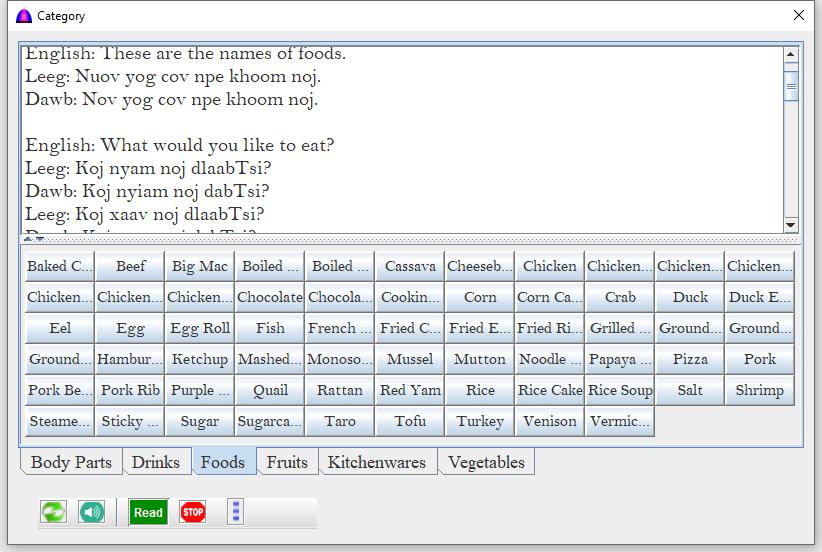| Leeg | Check to read texts on clicked button in Blue Hmong Dialect. |
