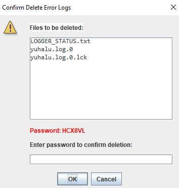 These logs can be sent back to the Yuhalu developer for debugging if needed. The Error Log window provides the following options: