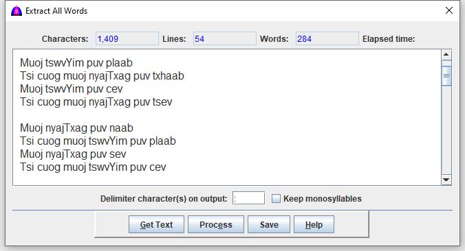 This is the help file for Extract All Words option under Tool menu.