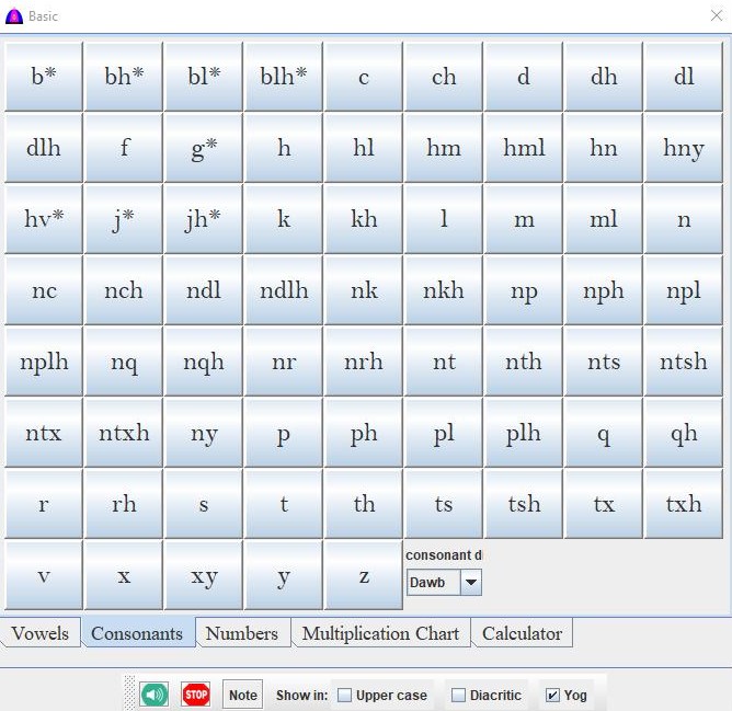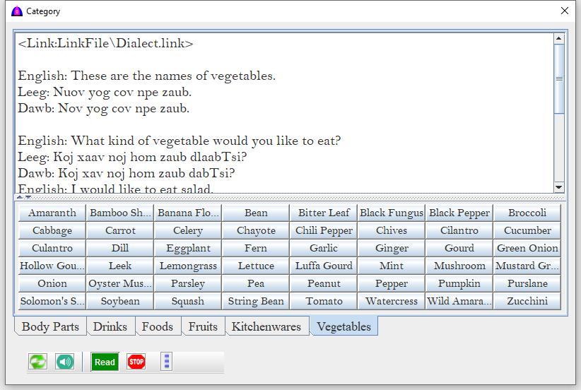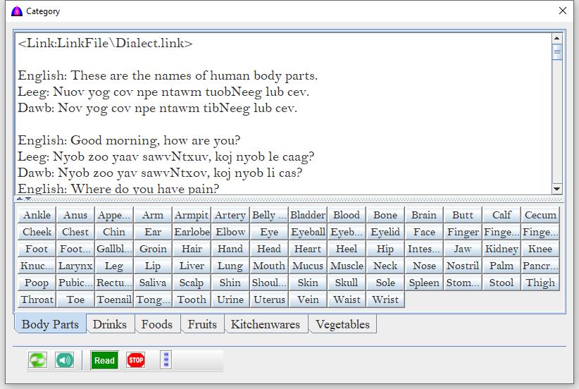| Leeg | Check to read texts on clicked button in Blue Hmong Dialect. |