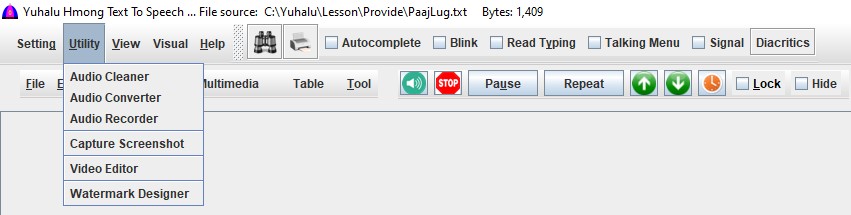 | Text To Audio | Refer to its screen or help file TextToAudio.html |
