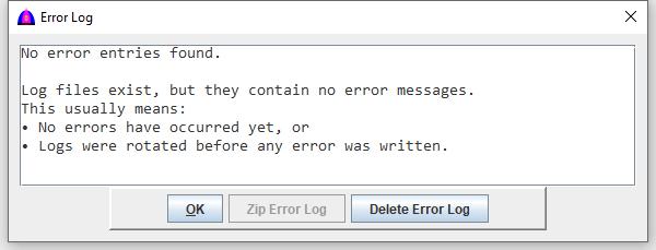 These logs can be sent back to the Yuhalu developer for debugging if needed. The Error Log window provides the following options: